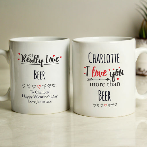 This cute personalised mug features the text "I love you more than the dog" to the front, high praise for a partner who knows how much you love you...