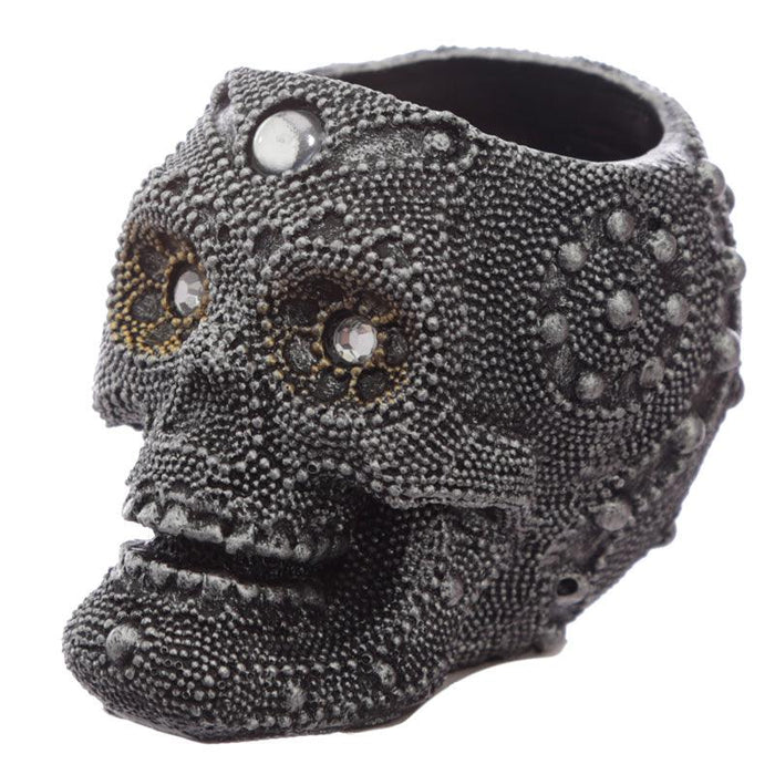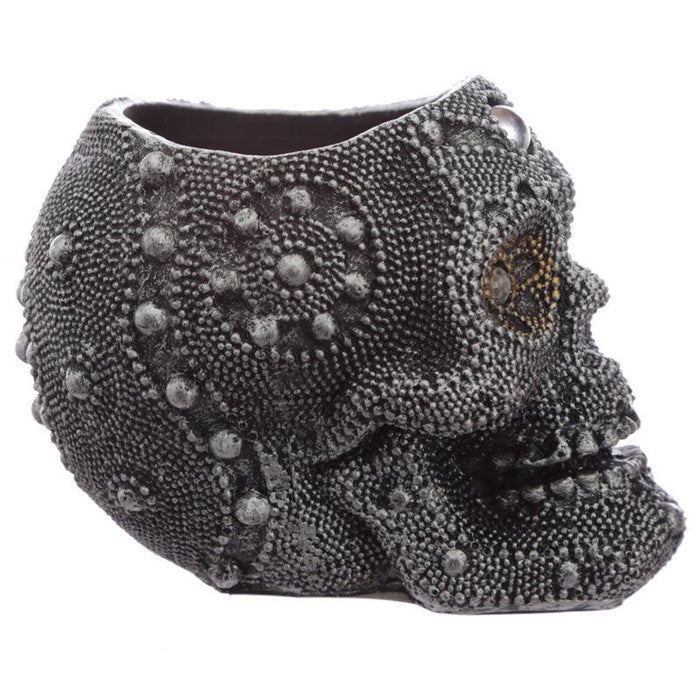 Silver Beaded Skull Head Tea Light Candle Holder