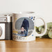 The 11oz ceramic mug is 9cm tall, 11cm wide (including handle) and 8cm diameter.