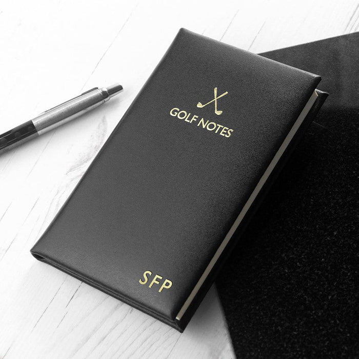 Personalised Luxury Black Leather Golf Note Book