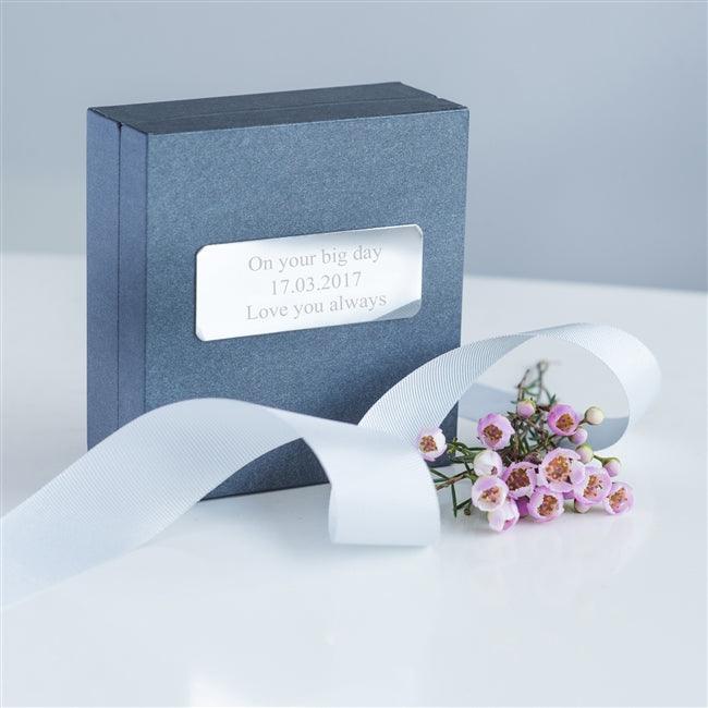 This gorgeous gift comes in a stylish grey gift box which can be personalised with a solid silver brass engraved nameplate attached to the lid; you can make it an extra special keepsake by engraving your own personal message. We can engrave up to 75 characters over 3 lines.