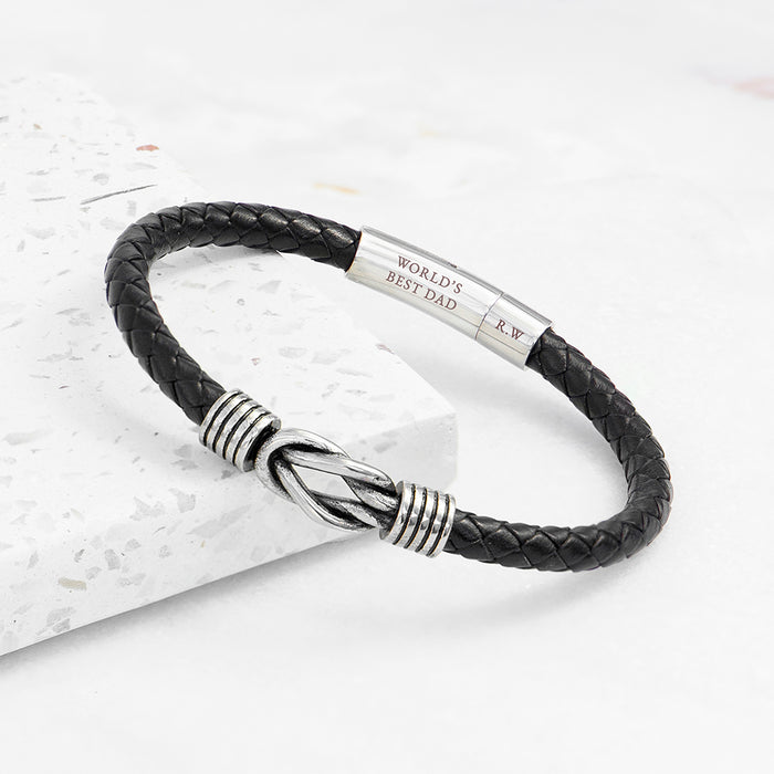 If you’re looking for a unique and stylish bracelet that really shows off your personality, you’ve come to the right place! Our hardwearing and head-turning Personalised Men's Infinity Knot Leather Bracelet is the ideal gift for a fashion conscious gentleman. Whether you’re just popping to the shops or going on a night out, this bracelet will make the ideal accessory for any occasion.