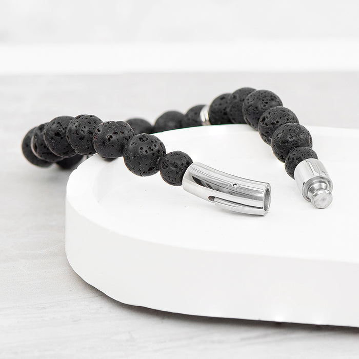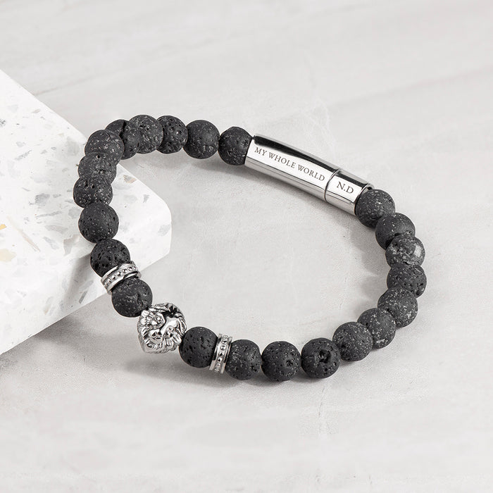 Do you know someone special who deserves a little extra sparkle? Our personalised Silver Lion Beaded Bracelet is the perfect present for that special guy in your life - be it your partner, brother, son or friend. The silver plated lion icon coupled with the jet black lava stone beads makes this an eye-catching accessory and will add some style and sophistication to any outfit.