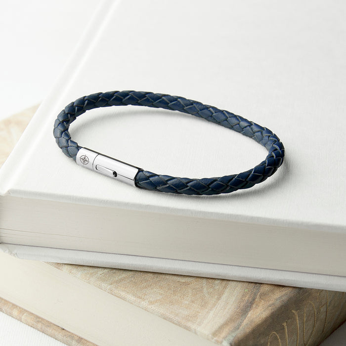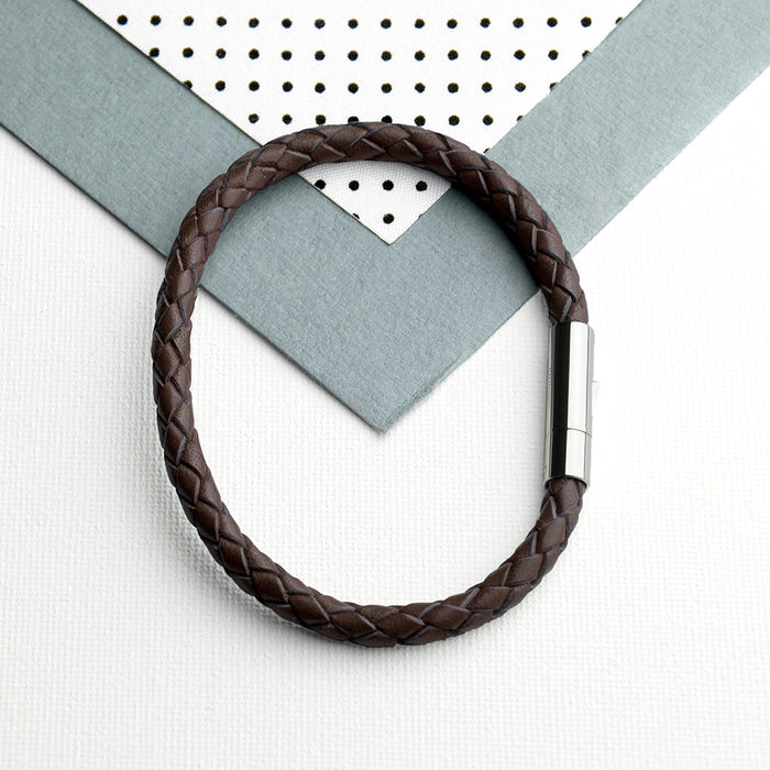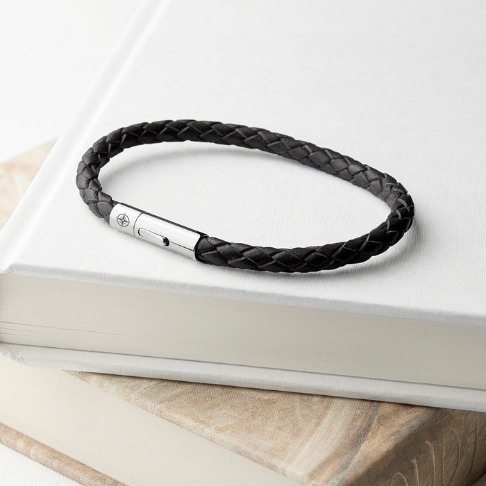 Personalised Men's Travel Compass Capsule Leather Bracelet
