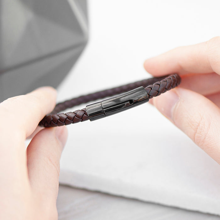 No matter what style of clothing he prefers, our personalised men’s woven brown leather bracelet is bound to become one of his favourites. Imagine him wearing it proudly as he takes on the world – it's sure to turn some heads. Stylish, modern, and perfect for gifting, this is sure to make that special guy in your life smile. So why not add some class and sophistication to his outfit today!