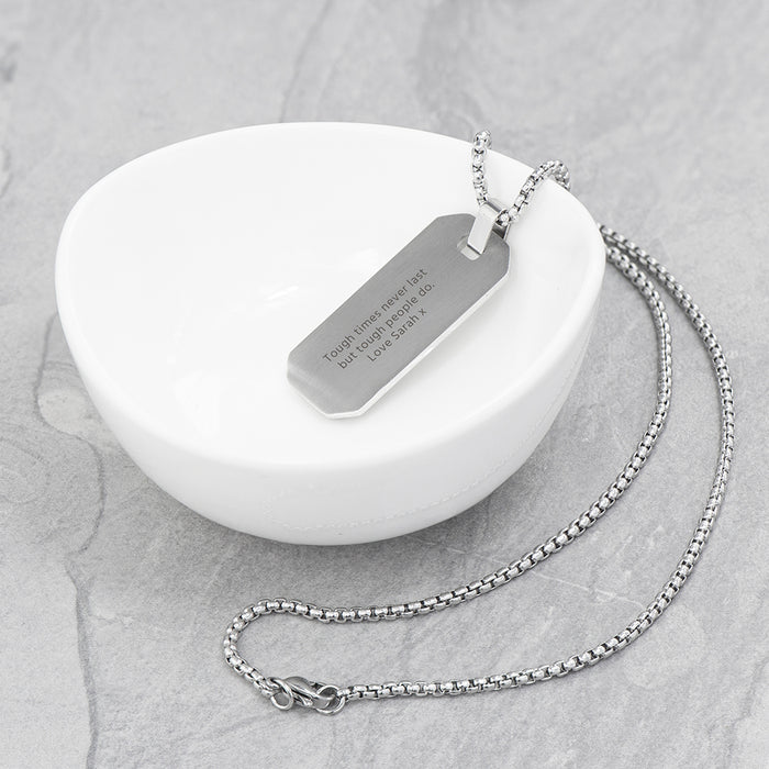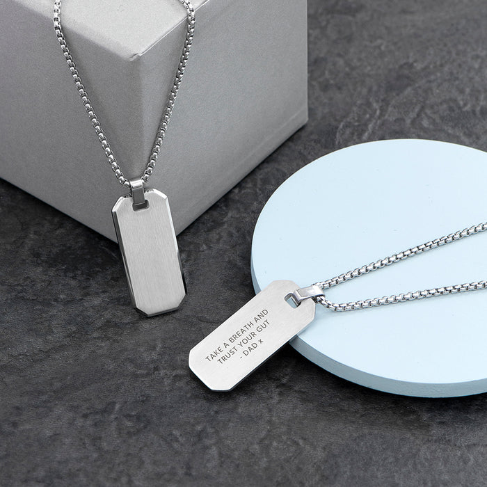 Personalise his stunning stainless steel necklace with a heartfelt message. And our personalisation team will do the rest, engraving it onto the pendant, and creating a beautiful present that will add an extra sparkle of personality to his ensemble while bringing a smile to his face. He'll love showing off his new necklace; it isn't everyday he gets such a one-of-a-kind gift! Give him a truly special gift today!