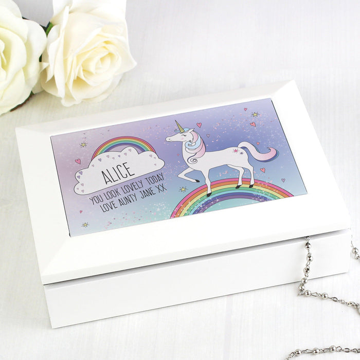 Personalised Unicorn White Jewellery Box