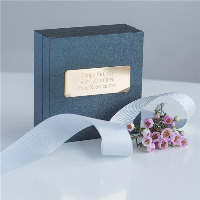 Supplied in a high quality grey gift box hand-tied with a light-grey grosgrain ribbon. The box is personalised with an engraved gold nameplate affixed to the lid of the box, 75 characters max over 3 lines.