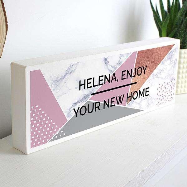 As part of our new personalised geometric range this Geometric Wooden Block Sign is the perfect modern gift for any new home.