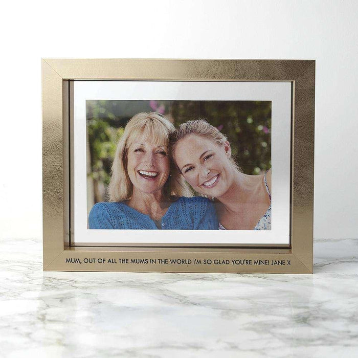 This beautiful gold coloured photo frame is a wonderful gift for Her. With a thick metallic boarder this frame is a great way to showcase Her most treasured photos.