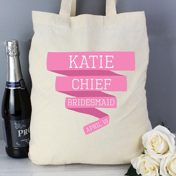 Personalise this Pink Banner Cotton Bag with a name up to 12 characters, a further 2 lines of 12 characters and the last line can be personalised with a date up to 10 characters.