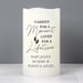 This bespoke baby loss candle makes a beautiful lasting memorial keepsake which won't burn down like a normal candle. The realistic LED candle is made from plastic and covered in real wax giving it an authentic feel, whilst the internal LED flickers just like a real candle radiating a reassuring glow.