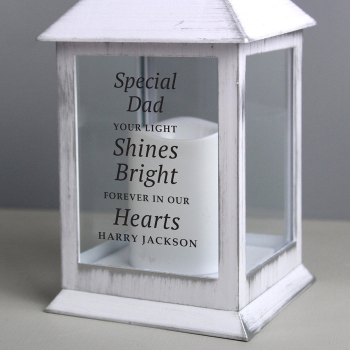 Personalised 'Your Light Shines Bright' Memorial White Lantern