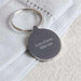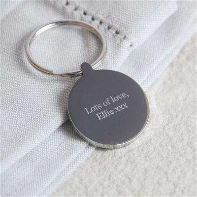 The keyring can be engraved on the back with up to 30 characters.