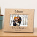 A high quality oak veneer wood photo frame. The top is engraved with Mum. The bottom of the frame is personalised with Love You Always and a message of your choice.