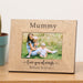 A high quality oak veneer wood photo frame. The top is engraved with Mummy. The bottom of the frame is personalised with Love You Always and a message of your choice.
