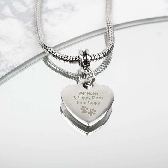 Personalised Pet Memorial Pawprint Heart Charm Necklace