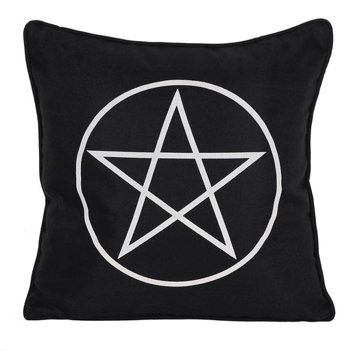 This lovely square fabric cushion is black in colour with a white pentagram design. Zip closure so inner can be removed.