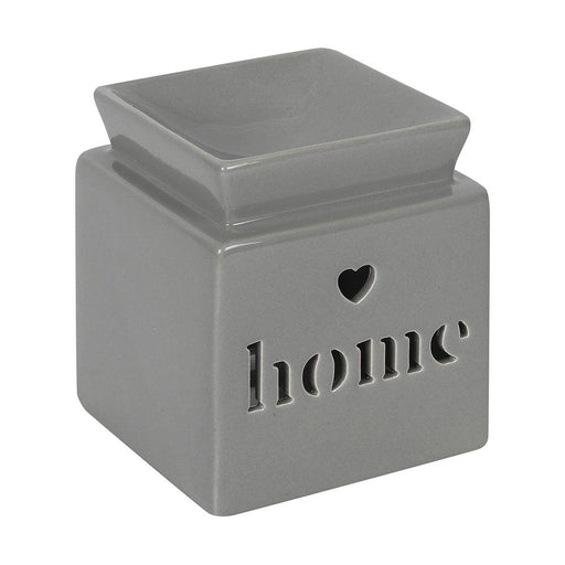This light grey ceramic oil burner features a cutout heart and 'home' text in a cute, contemporary design. Place fragrance oil or wax melts into th...