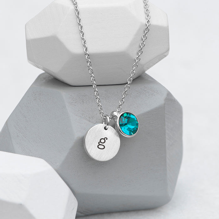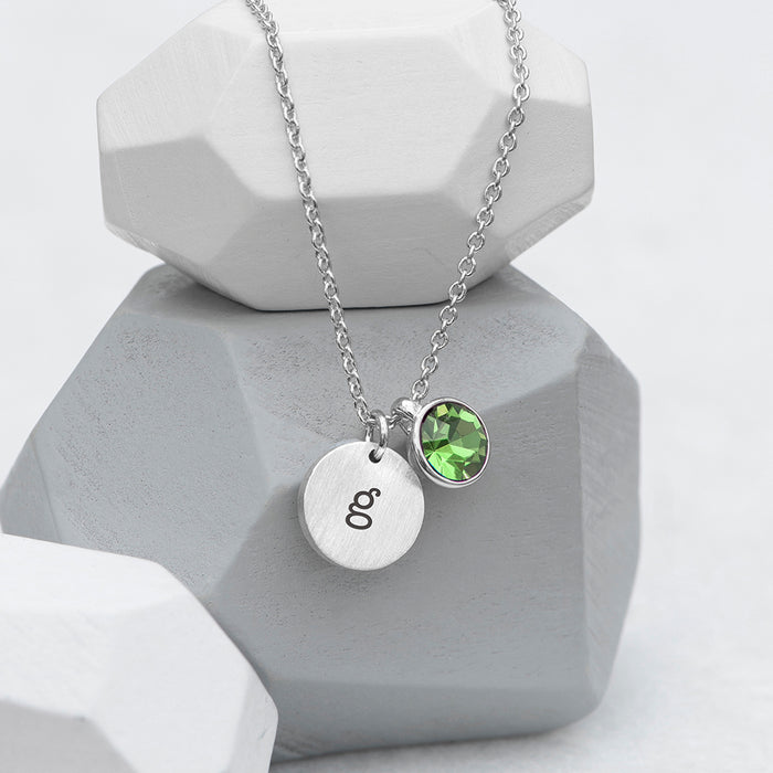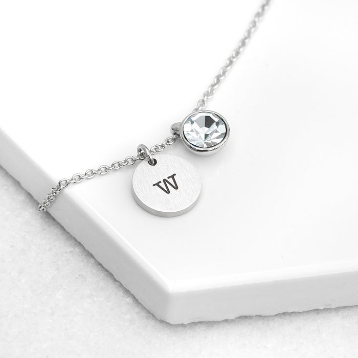 Personalised Monogram Silver Birthstone Crystal and Disc Necklace