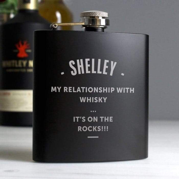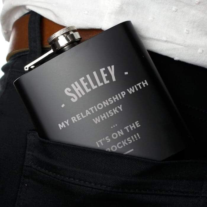 Enjoy your favourite tipple from this Personalised Any Message Black Hip Flask!