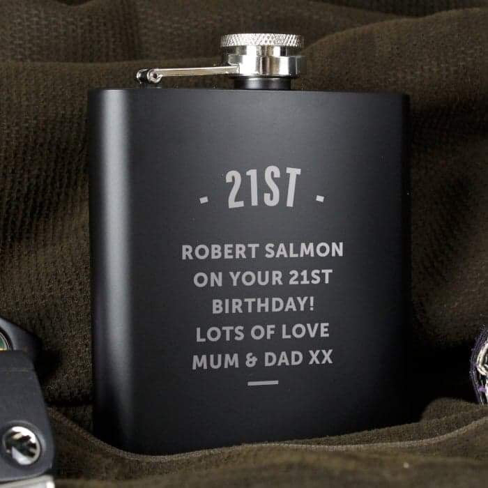 This hip flask can be personalised with a name up to 12 characters and 5 lines of text, with up to 20 characters per line.