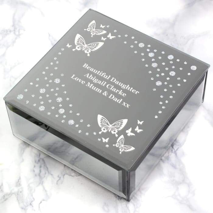 Our Personalised White Butterfly Diamante Glass Trinket Box is a stylish place to keep all of life's little treasures!
