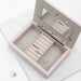 Keep your memories alive with this beautiful powder white and rose gold jewellery box. With a luxury nude suede feel interior, and mirror situated on the reverse of the lid. The jewellery box has plenty of room for rings, trinkets and accessories, and the soft suede will keep jewellery scratch free.