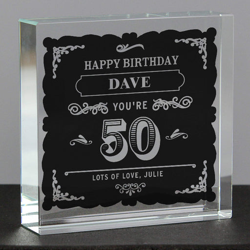 Personalised 50th Birthday Vintage Crystal Glass Block