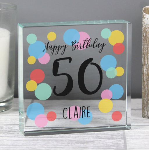 Personalised 50th Birthday Confetti Crystal Glass Block