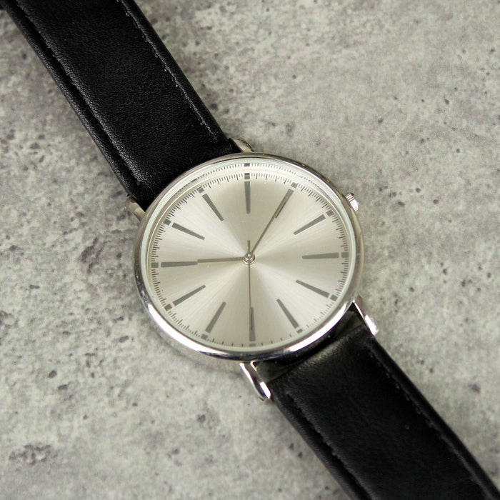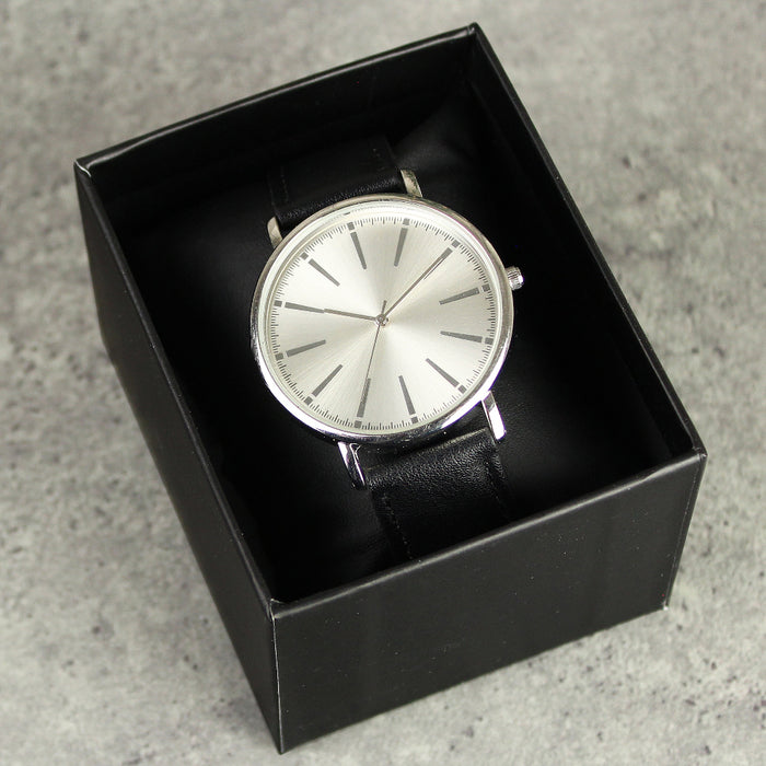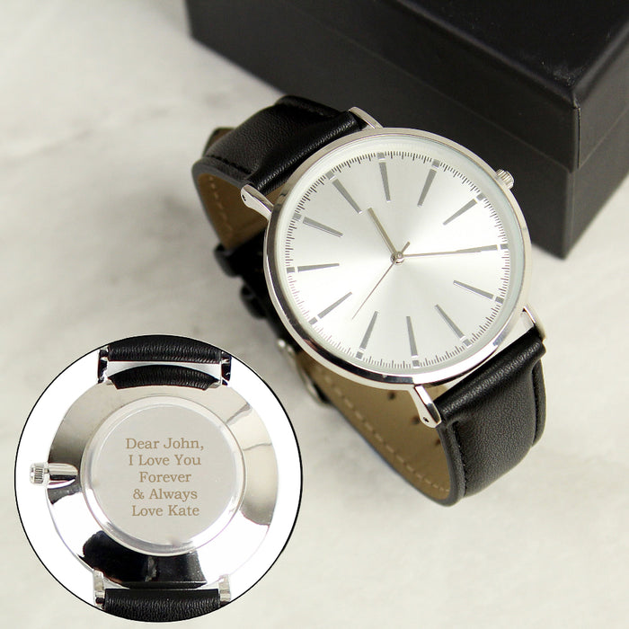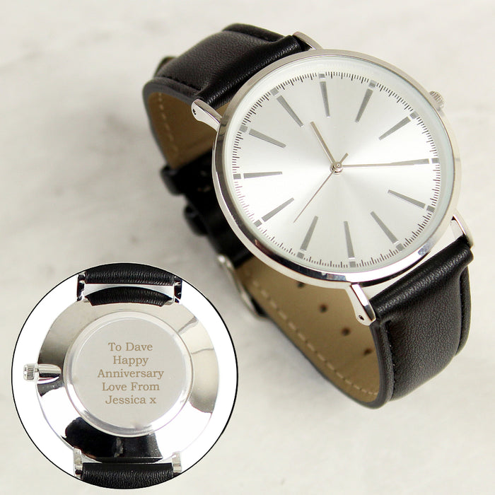 This Personalised Silver with Black Leather Strap Mens Watch is the perfect gift for any man on any occasion!
