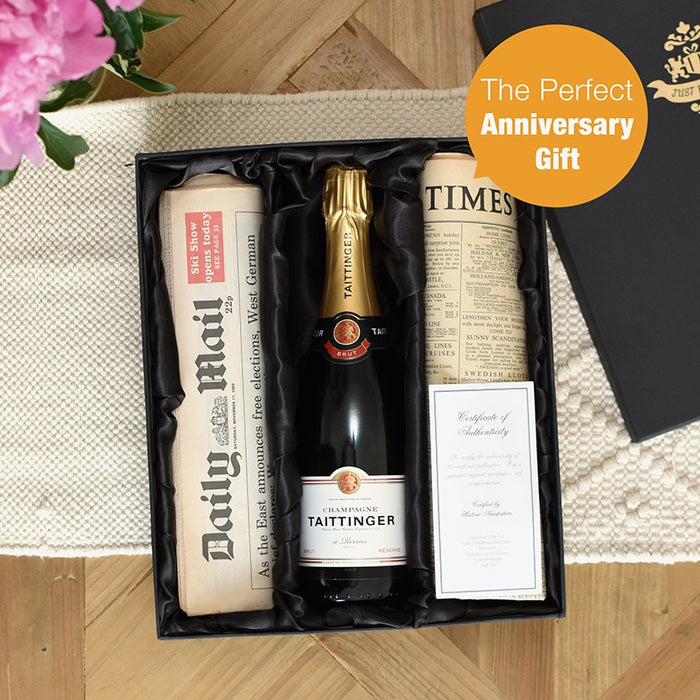 Double Newspaper & Taittinger Champagne Anniversary Gift Set