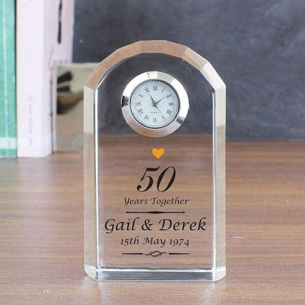 Personalised Golden 50th Anniversary Crystal Clock Gift