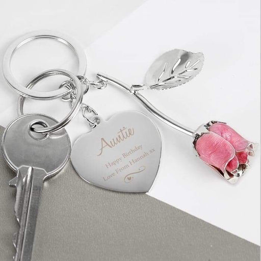 View full detailsPersonalised Silver Plated Pink Rose Keyring