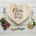 Heart shaped cheese board with integrated speciality knife compartment, made from sustainable Hevea wood.