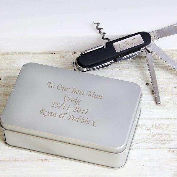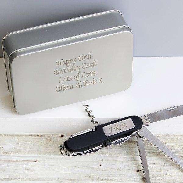 Personalise the knife with up to 3 initials and 3 full stops and add any message to the tin over 4 lines and up to 15 characters per line. Please include the full stops in the field below.