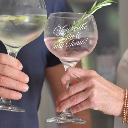 Engraved Copa de Balon gin glass. Engraved on the side in a script font with 'You're the Gin to my Tonic'. 56cl Copa de Balon Laser engraved Size...