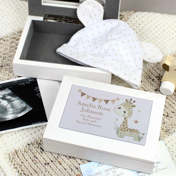 Personalised Hessian Giraffe Wooden Jewellery Box