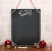 A lovely black chalkboard Christmas sign with stripy red and white rope.