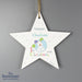 Personalise The Snowman and the Snowdog My 1st Christmas Blue Wooden Star Decoration with a name up to 12 characters in length followed by a year up to 4 characters in length. The words 'My 1st Christmas' are fixed. All personalisation is case sensitive and will appear as entered.