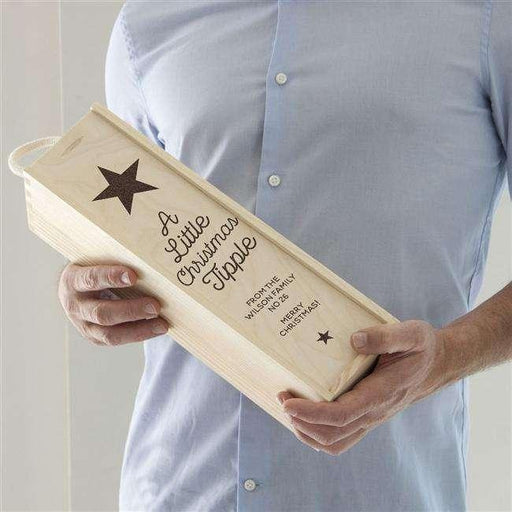 The wine box is engraved with 'A Little Christmas Tipple' as standard. A personalised message up to 50 characters can be added underneath. Please add your message in the personalisation box above