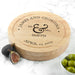 Round cheese board with integrated speciality knife compartment, made from sustainable Hevea wood. Includes 3 wooden handled specialist cheese knives with stainless steel handles.