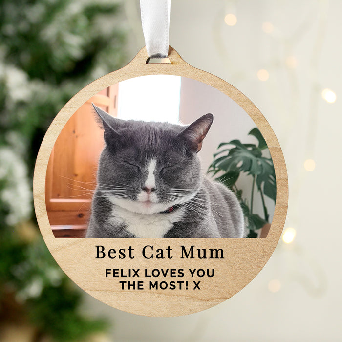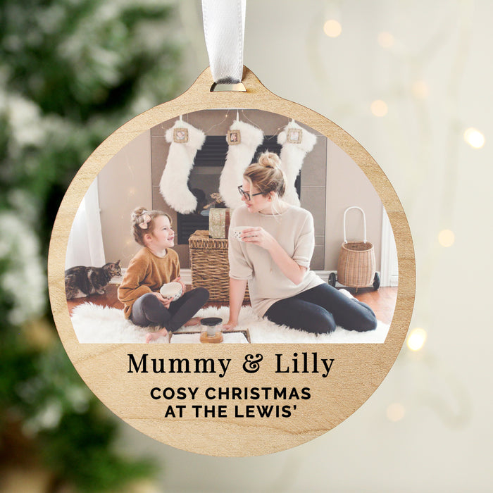 This personalised photo upload round wooden decoration, would make the perfect addition to your Christmas tree!