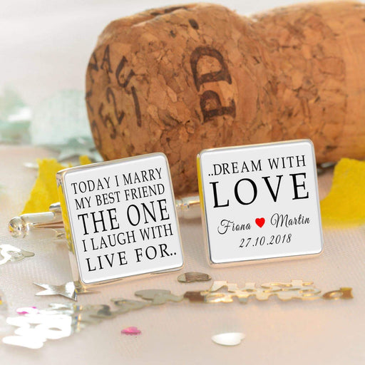 These high quality silver plated cufflinks can be personalised with any message and date of your choice. A perfect wedding gift, birthday or annive...
