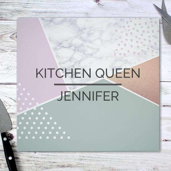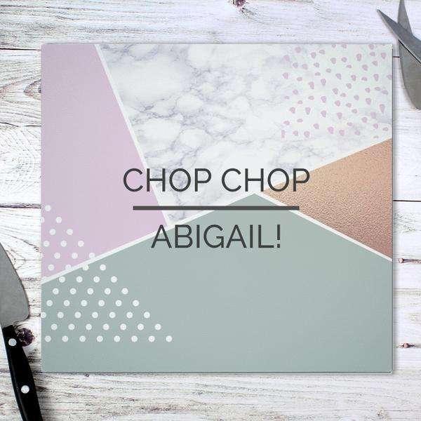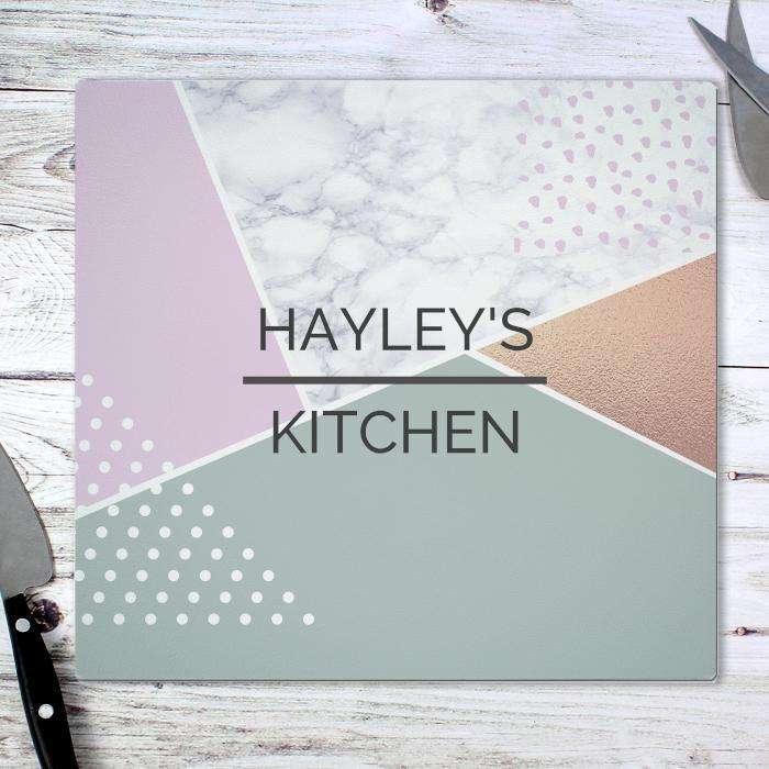 Personalised Geometric Glass Chopping Board & Worktop Saver