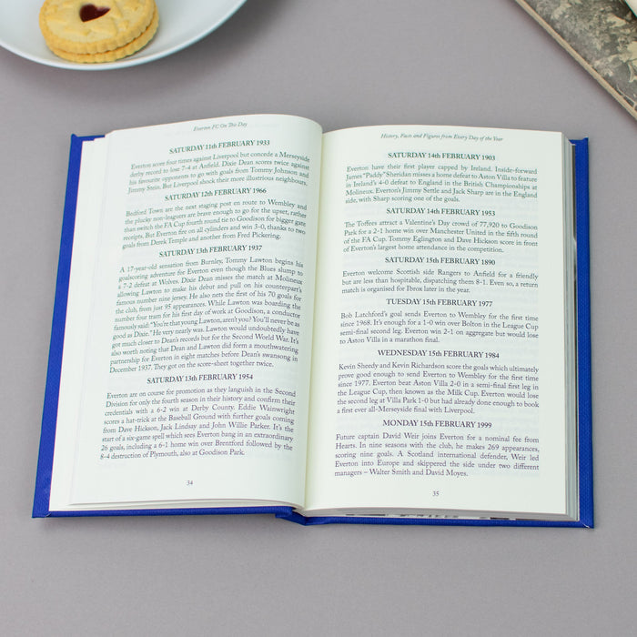 From 1st January 1979 when Peter Reid (then playing for Bolton) breaks his leg clashing with Everton keeper George Wood in a snow-abandoned match, to December 31st 1994 when the Toffees sign off a fantastic year defeating Ipswich 4-1. Memorable moments in history are recorded in this handy little book. 192 fact filled pages mean that every day of the year has at least one nugget of information about Everton’s past victories and events. Give the footie fan in your life a nostalgic read. Whether he reads it to brush up on his facts before a big game, wants to know what memorable things happened on his birthday, or thumb through a quick read whilst on the loo.
