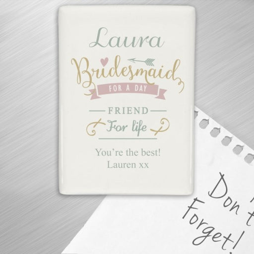 View full detailsPersonalised I Am Glad That You’re My Bridesmaid Fridge Magnet