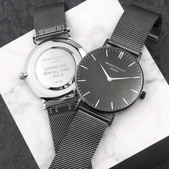 Engraved Men's Metallic Charcoal Grey Mr Beaumont Watch