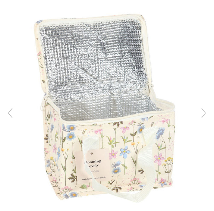 Brighten up lunch breaks with this floral lunch bag, made from recycled plastic and featuring a timeless design of wild blooms in pink, blue and yellow.