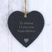 Personalise this Slate Hanging Heart with three lines of 15 characters in the centre of the heart. The design features a sweet heart motif at the bottom of the slate heart.